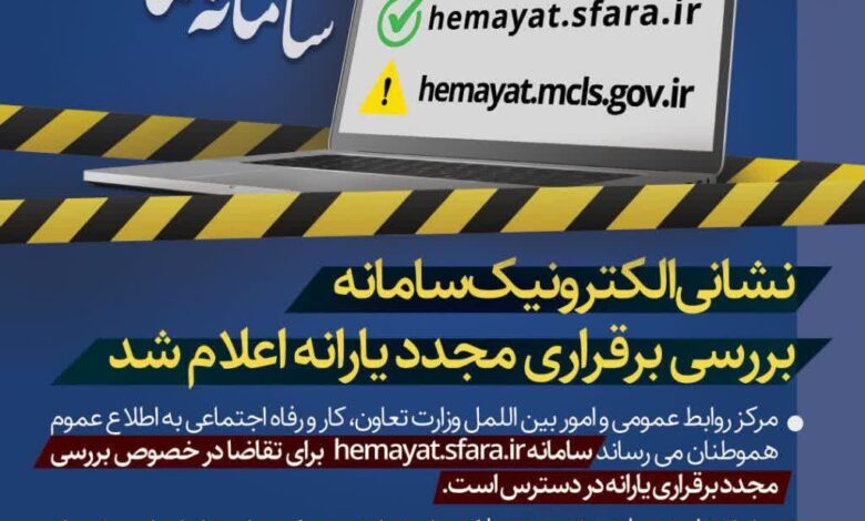 نشانی الکترونیک سامانه بررسی برقراری مجدد یارانه اعلام شد